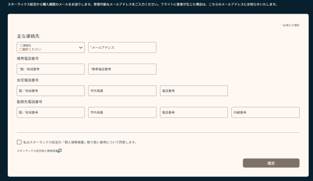 次に連絡先関連の情報を入力し「確定」を押します。