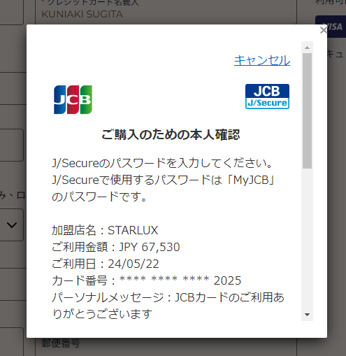 JCBカードでのお支払いをする際にJ/Secureのパスワードが求められました。