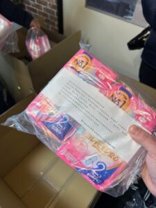また、この計画を支持してくださる女性の一人が軍の病院で働くナースの苦労を思い、生理用ナプキンも寄付してくれました。