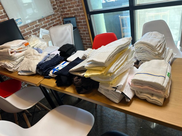 小包の中には心温まるお手紙も入っていたり、タオルの他にTシャツやシーツもありました。