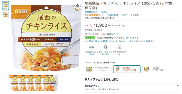 こちらは尾西のチキンライスという非常食で賞味期限は5年持ちます。