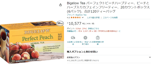 アメリカのハーバルティーBIGELOW Perfect Peachを飲んでみる