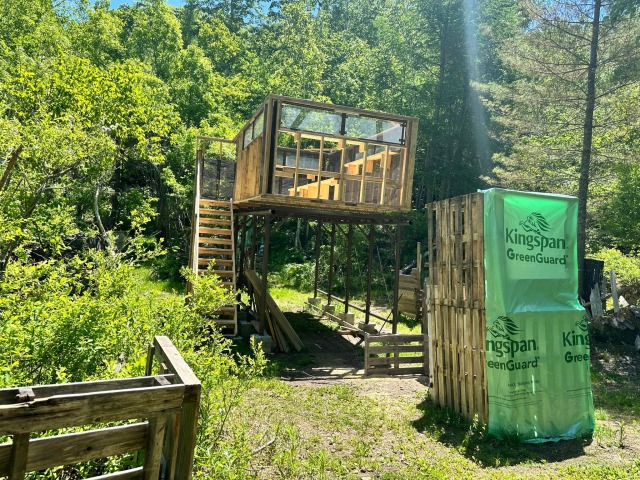 森の中には木製の工作物など隠れるところが散りばめられています。