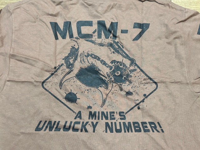 Tシャツの背中側には"MCM-7 A MINE'S UNLUCKY NUMBER!"と書かれています。