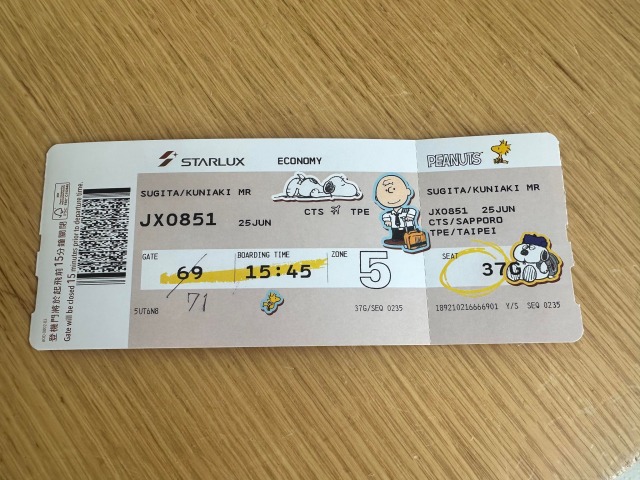 発券された搭乗券はピーナッツとのコラボデザインでおしゃれかわいい。