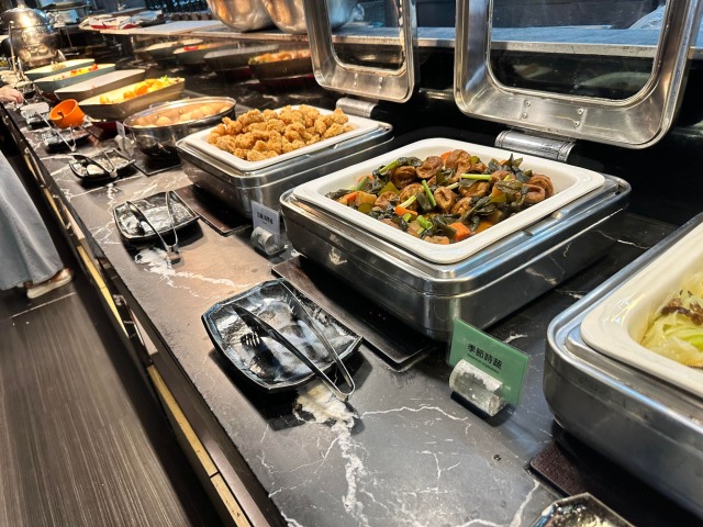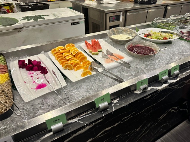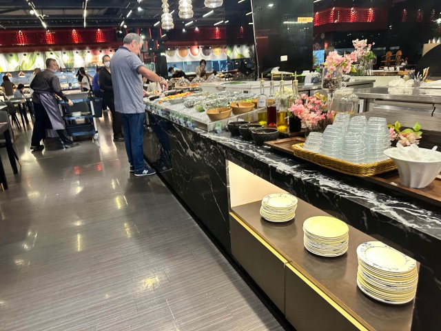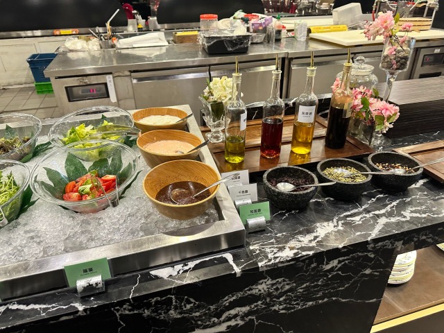 ヌードルやサラダが手前にあり、やっぱり日本のホテル朝食と比べたらだめだな...と思いましたが