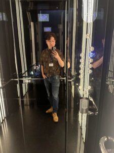 高所恐怖症ぎみなので、4階あたりからガラスに背を向けます...。