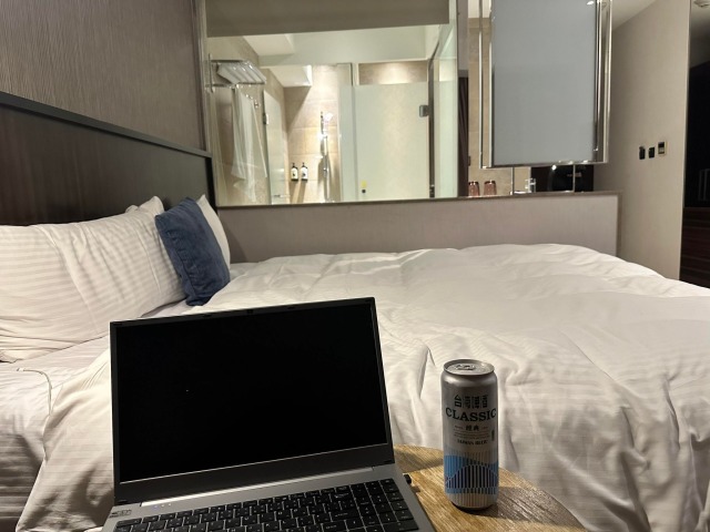 台湾ビールを飲みながら、簡単な仕事を済ませます。