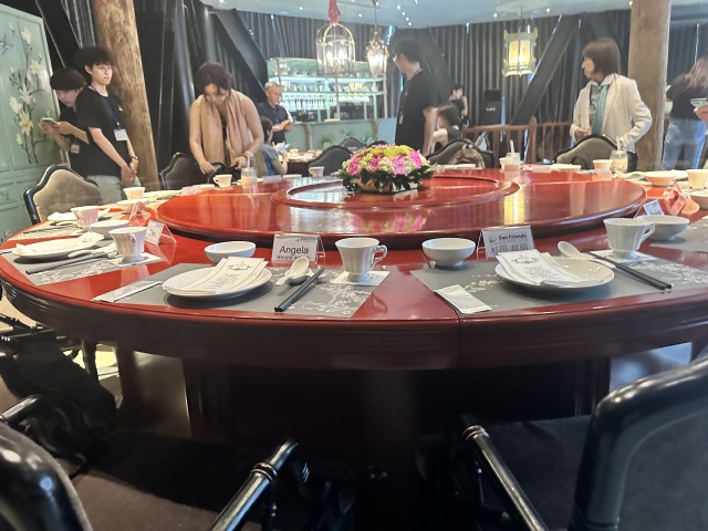 12名が掛けられる円卓には綺麗なお花とテーブルセットが用意されていました。