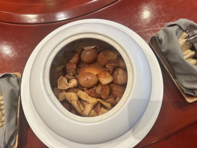 壺の中に入っているのは、卵と豚肉を煮た料理です。