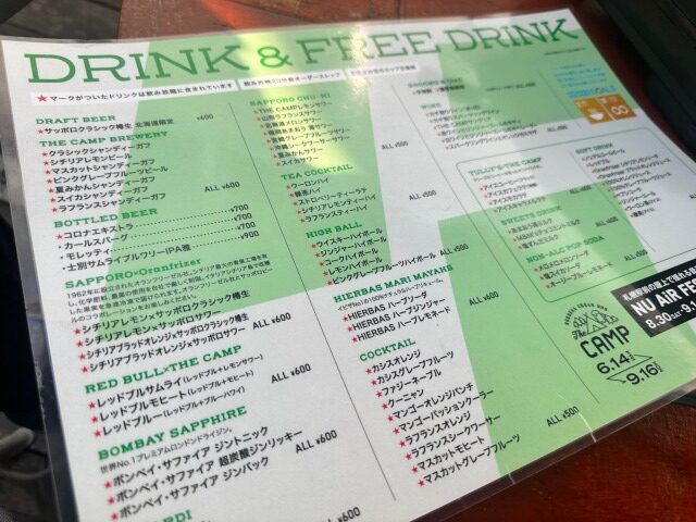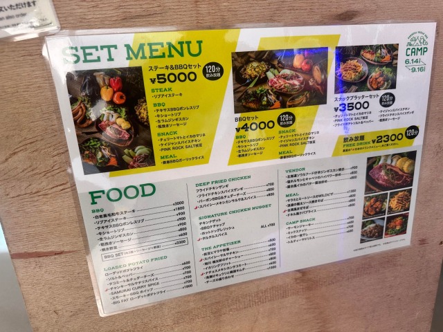 ノルベサビル屋上THE CAMPのメニュー