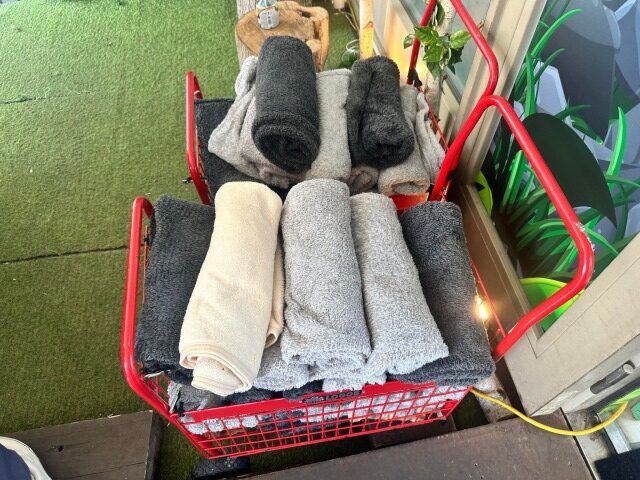 入り口右手にはブランケットが置いてあり、夜に重宝しそう。