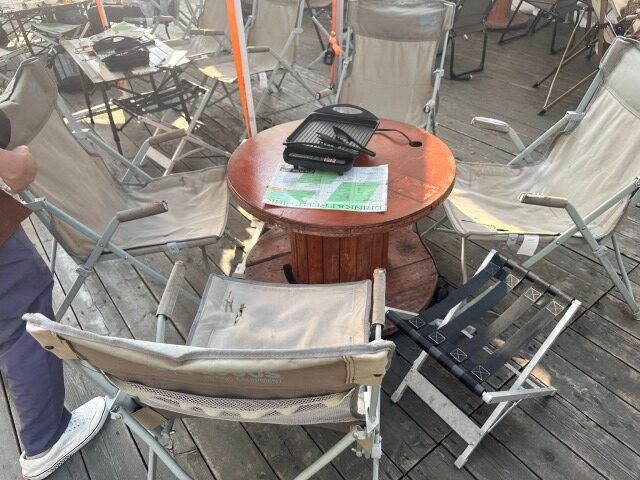 背もたれが無いベンチより、深く腰を掛けられるキャンプ用の椅子の方が快適です。