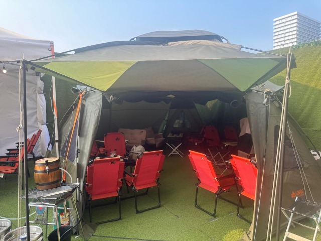 ノルベサビル屋上のビアガーデンTHE CAMPの会場設備