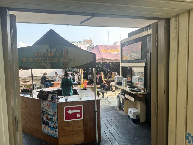 ノルベサビル屋上のビアガーデン、THE CAMPの入り口
