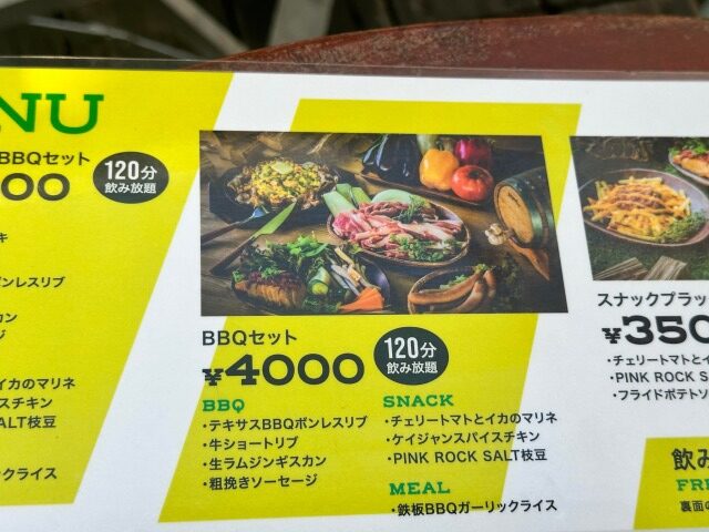 | BBQセット(120分飲み放題) | 4000円 |