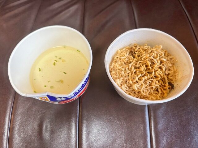 そしてお湯を麺が入ったカップに入れますが、目安の線がありません。