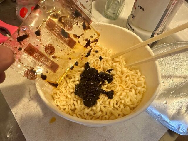 全ての袋を混ぜて、一般的なカップヌードルのようにして食べていました。