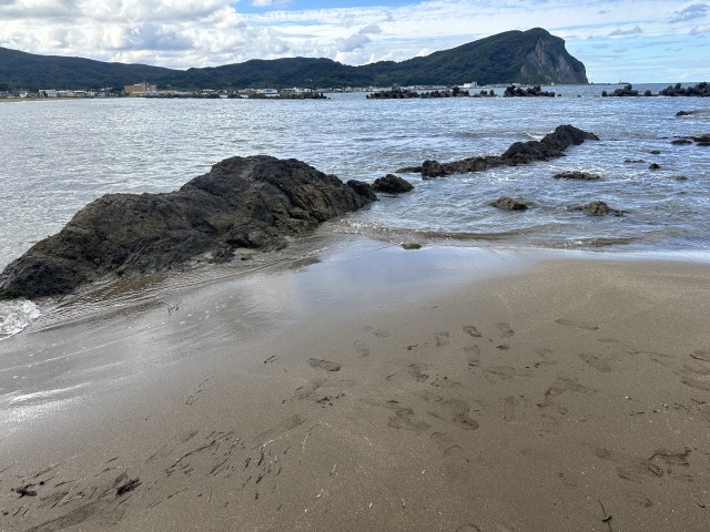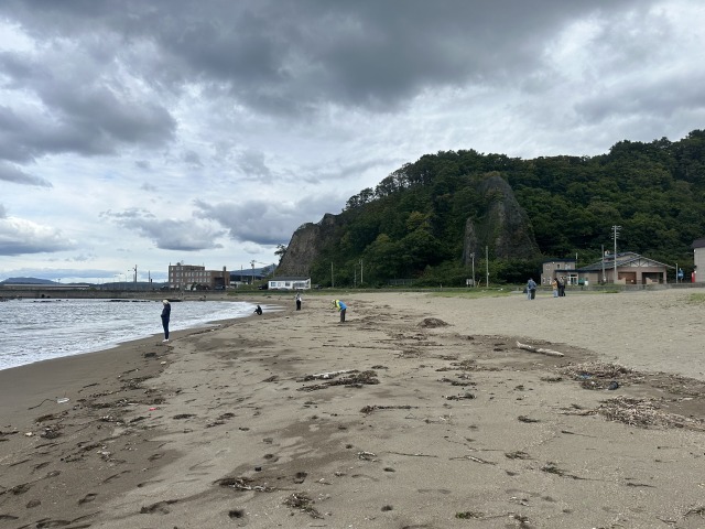 札幌駅から車で約60分で余市の浜中・モイレ海水浴場に到着。