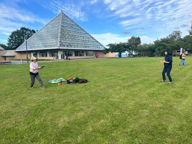 とうのも、普通のフリスビーではなくドッジビーというもので遊びました。