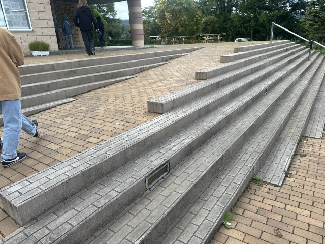 階段を使う人も、車いすを使う人も同じ道を通ることができるデザインに関心しました。