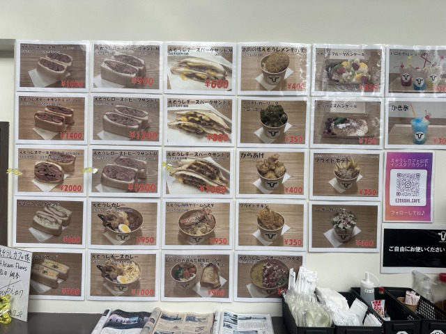 施設内のレストランには「えぞうし」をメインとするメニューがたくさんありました。