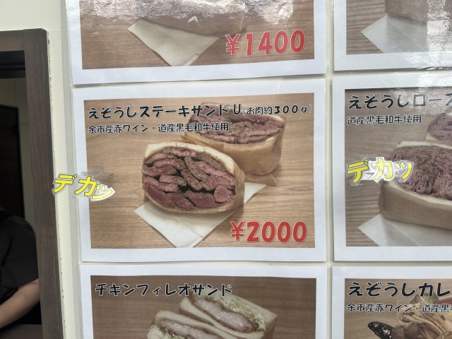 「えぞうしステーキサンド(お肉約300g)」はインパクトが大きいですね。