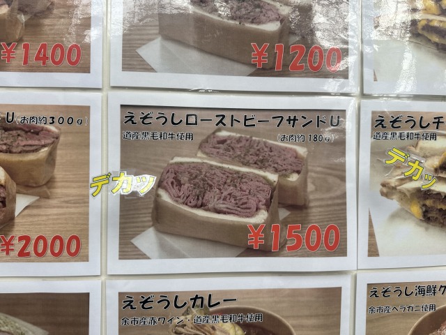 こちらは「えぞうしローストビーフサンドU(お肉約180g)」も迫力満点でした。