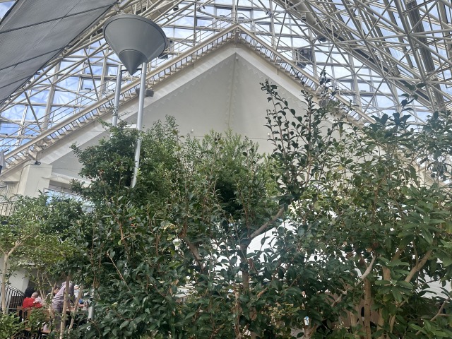 屋内ですが、様々な種類の樹木が植えられていて食事をする人を楽しませてくれます。
