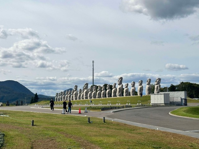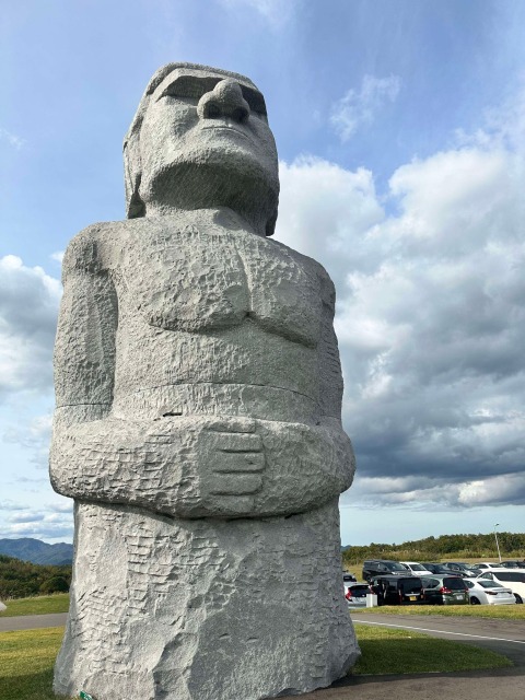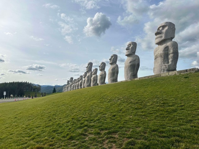 霊園入り口から駐車場へ抜ける通り沿いにはモアイ像があります。