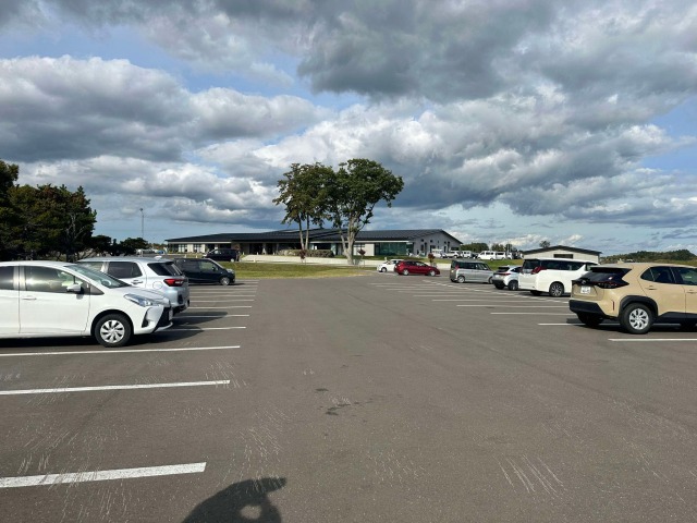 目の前の横に広い建物は管理施設でレストランも入っていました。