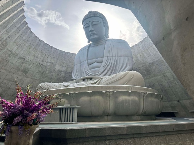 ラベンダーの丘から少し頭をのぞかせていた大仏のふもとにつきました。