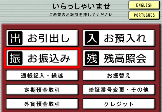 オンライン銀行を使っていない場合でも、ATMに普段使っている銀行のキャッシュカードを入れ「お振込み」から送金ができます。