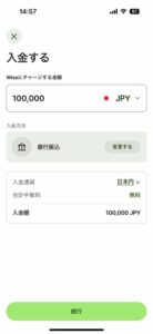 そちらの銀行口座に振り込めばWISEへの入金が完了します。