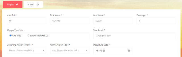捨てチケットを取ることが目的なので、フィリピンを出国するOne Way(片道)を選択してください。