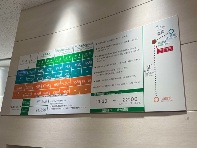 ロープウェイの運賃は大人2,100円、子ども(小学生以下)1,050円でした。