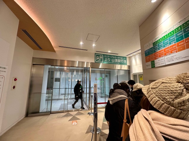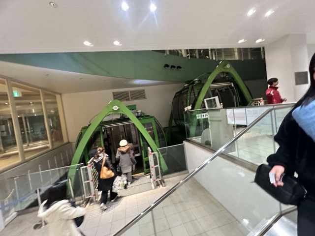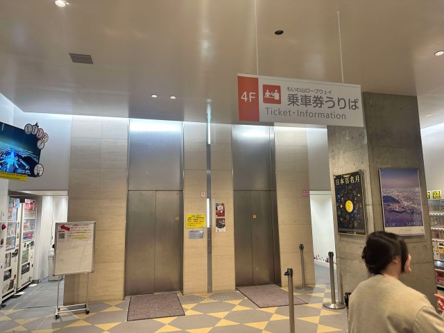 エレベーターで上層階のロープウェイ乗り場へ進むようです。