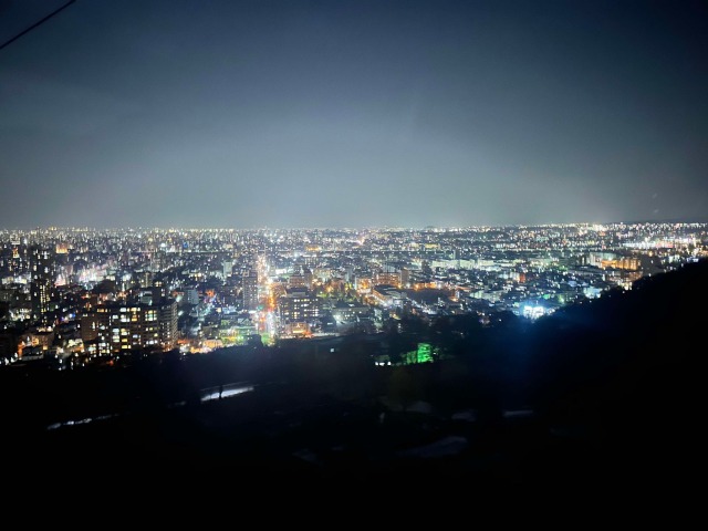 こちらは山頂に向かって進むロープウェイからの夜景です。