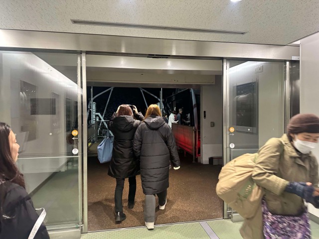 ロープウェイが到着し、ゲートが開き係りの方が誘導してくれるので前に進みます。