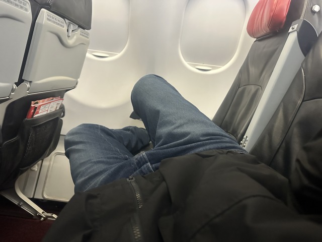 それは、写真を見てわかる通り足を窓側に向けて、頭を通路側にしている点です。