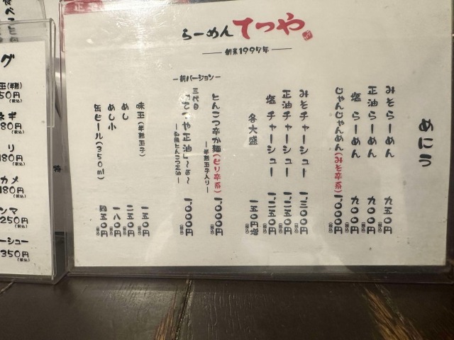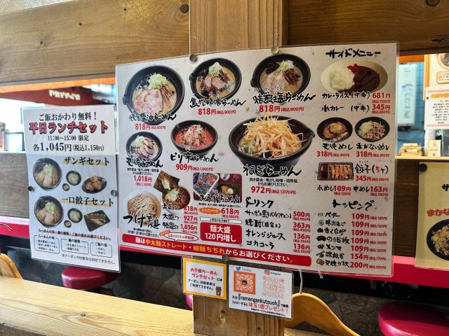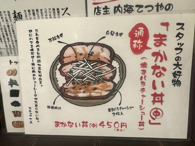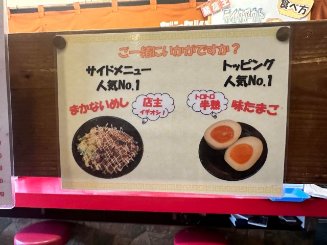 ご飯もの、サイドメニュー、飲み物はメニュー裏面に記載されています。