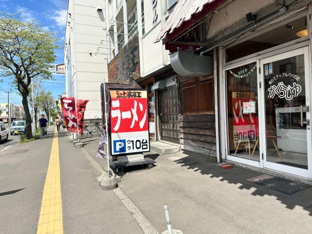 「ラーメン」と書かれた看板が目印の駐車場には10台停めることができます。