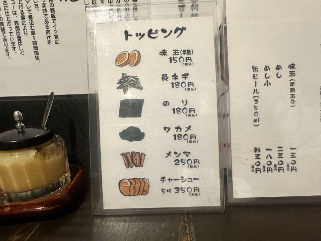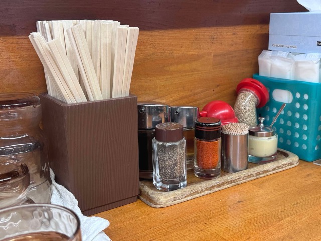 各席には調味料が整っているので、中盤から味変も楽しめます。