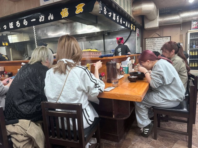 店内はもくもくとラーメンを食べるお客さんで込み合っています。