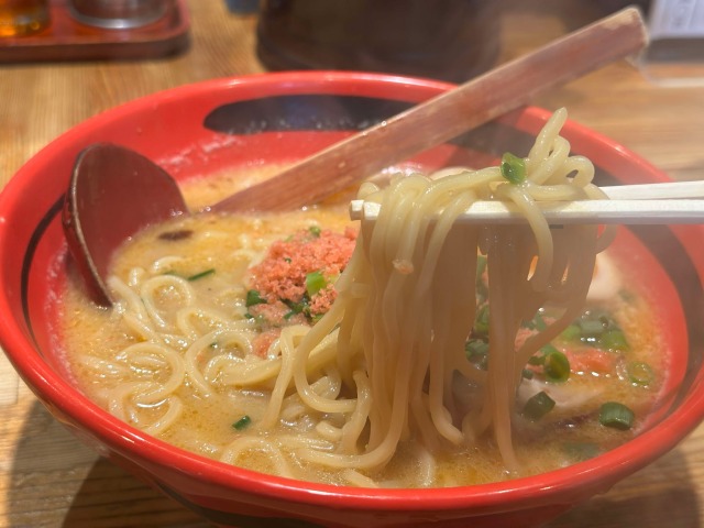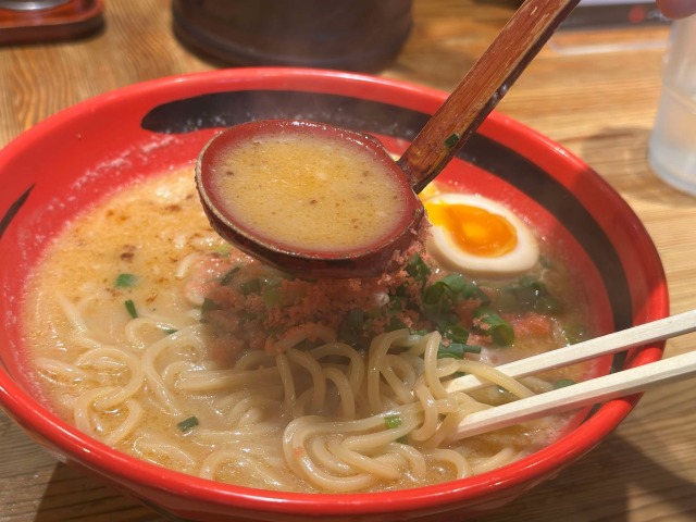 しかしスープは優しいえびのダシが香る濃厚まろやか豚骨ベース。