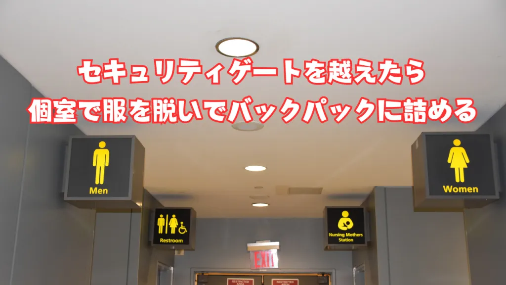 セキュリティエリアの個室で服を脱いで荷物を調整すれば、周りの目は気になりませんね。