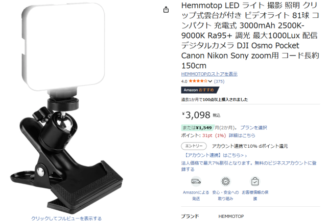 海外旅行中のオンライン会議や動画撮影に役立つクリップライトも持参しています。