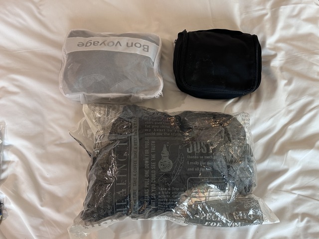 洗濯ものはコンビニのレジ袋に入れて、帰国後にすぐに洗えるようにまとめました。