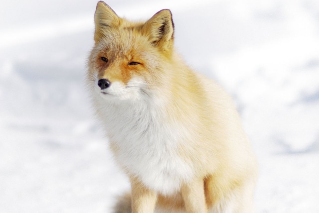 キタキツネは赤茶色の体毛を持ち、冬はふさふさの毛皮に覆われているため、とても愛らしい見た目をしています。