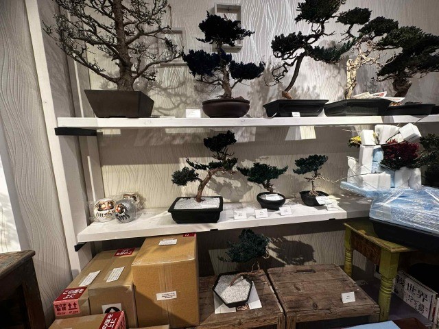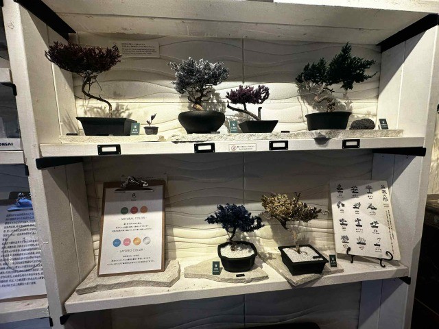 インテリアとして楽しめるよう、赤や金色にカラーリングされた盆栽もあり北海道らしい伝統と革新を感じました。